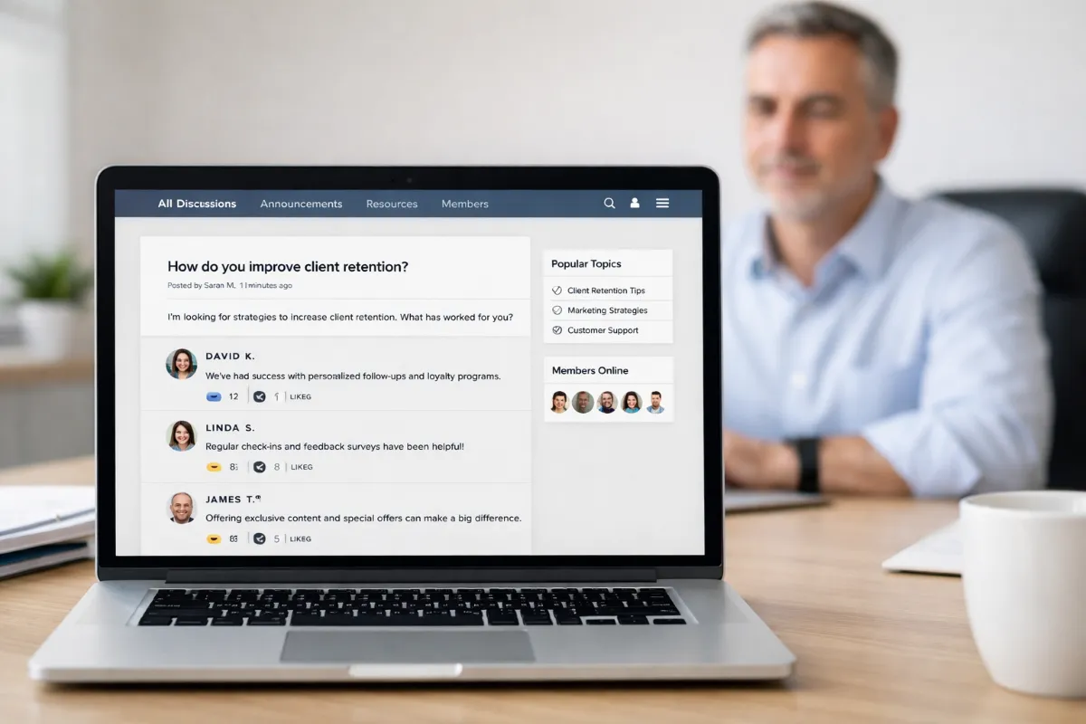 Private spaces where paying members interact, ask questions, and stay engaged with the program.