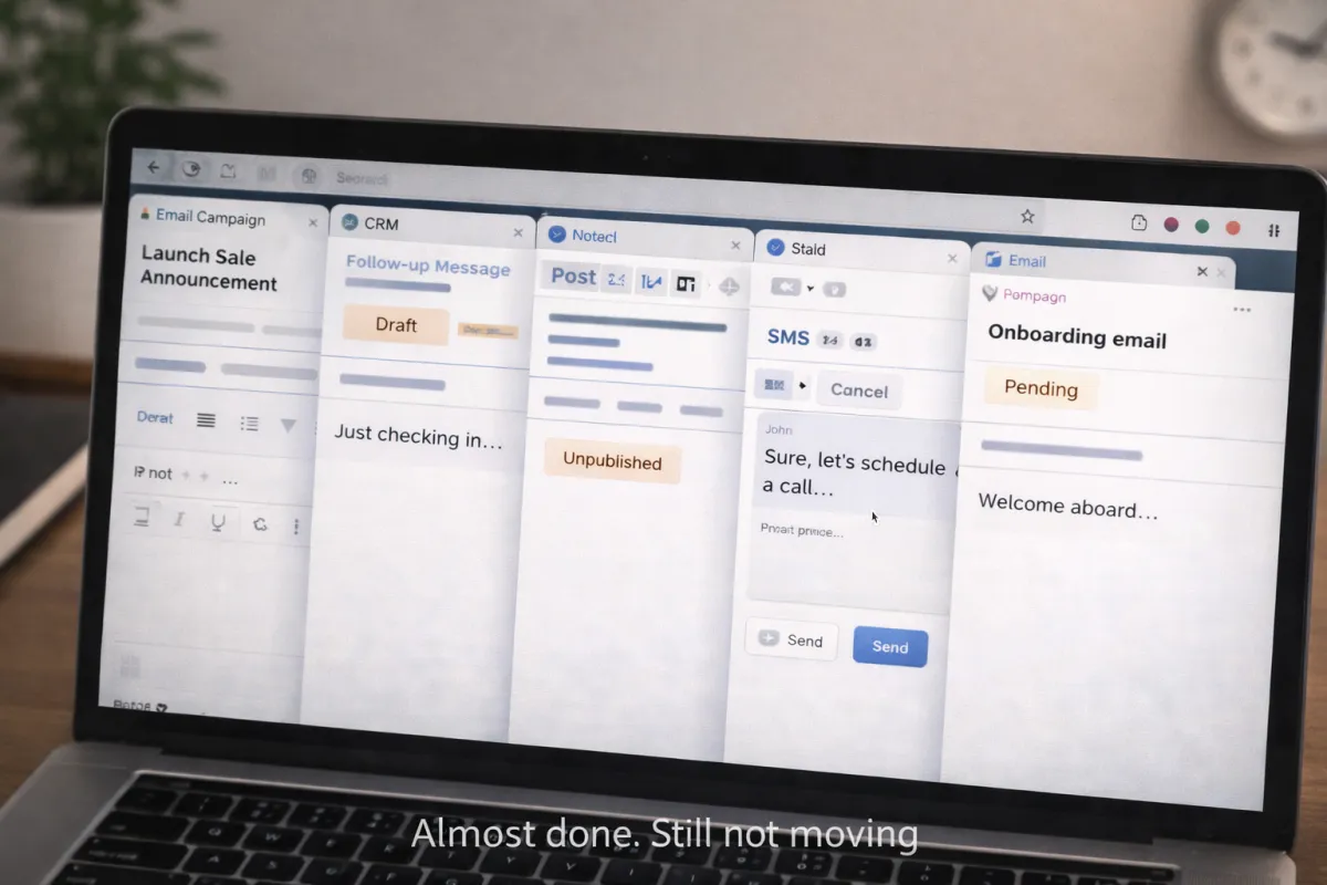 A follow-up email sits unfinished because no one had time to draft it.