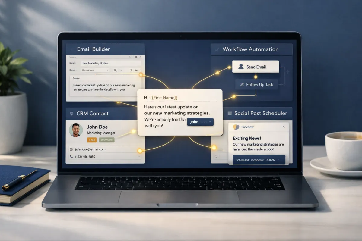 Because the writing happens inside the same system that manages contacts and automation, messages stay tied to the activities that triggered them.