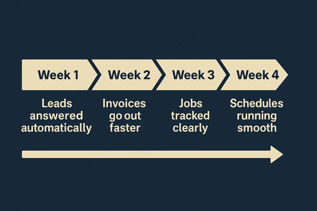 In just weeks, you’ll feel the shift: more control, less chaos, and a business that finally runs the way it should.