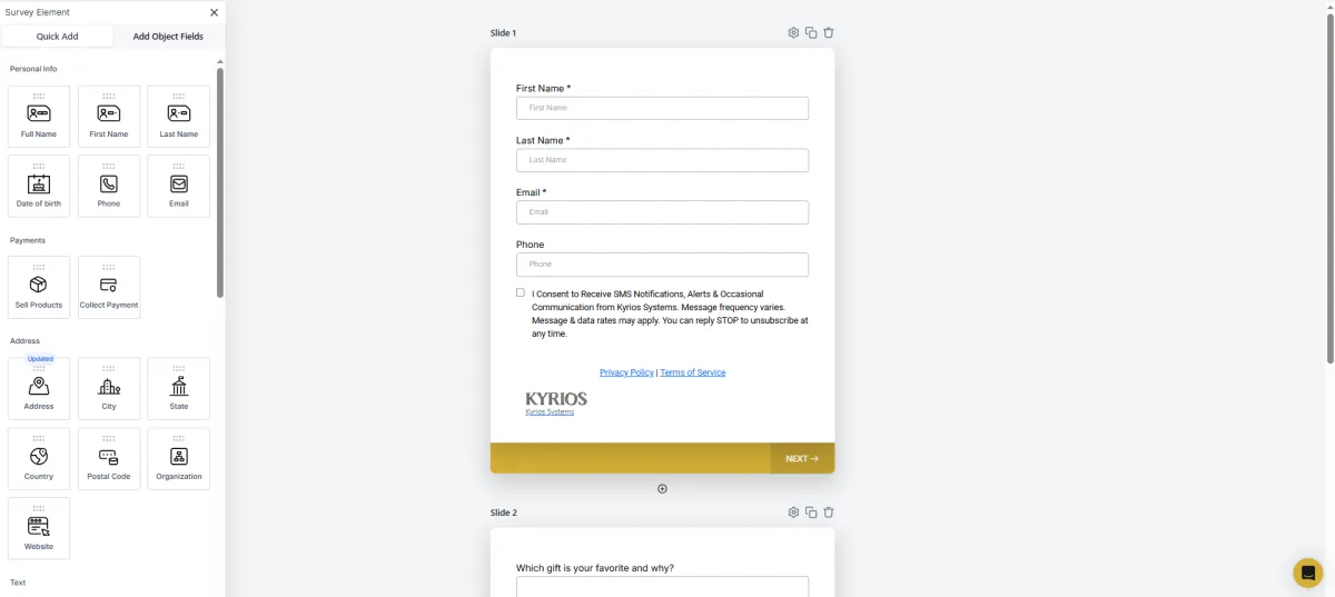Forms & Surveys inside Kyrios provide a structured way to capture information and connect it directly to your CRM and workflows.