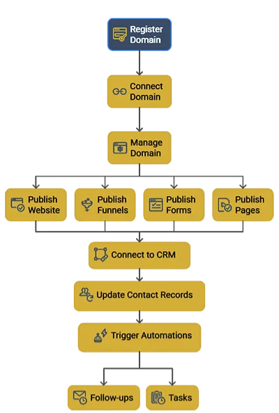 When hosting and domain control are inside the same system as your CRM and workflows, troubleshooting becomes simpler. You know where your domain lives. You know where your pages are published. You know where leads are going.