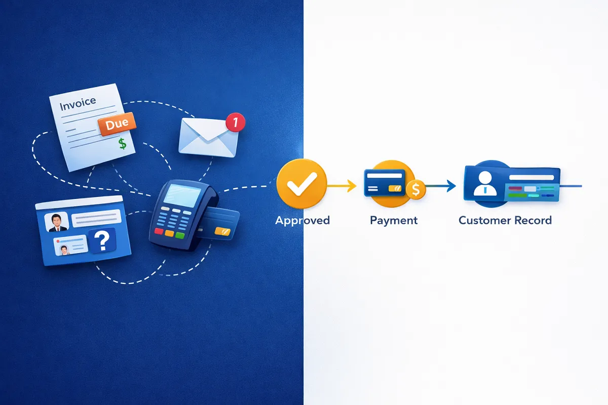 Payments are processed through integrated gateways, and the status updates immediately inside the system. The customer record reflects the change automatically. The team sees the same information at the same time.