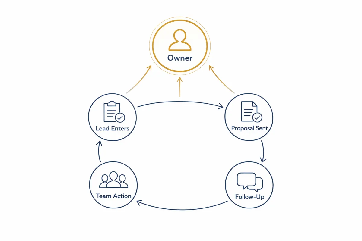 That’s why it keeps coming back to you. Not because your team can’t sell. Because the process doesn’t move unless someone pushes it forward.