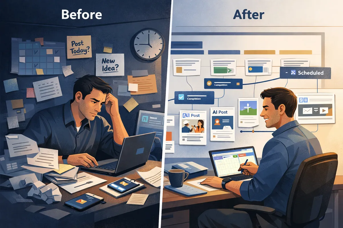 This turns social posting from a frustrating, repetitive task into a system that continuously produces content.