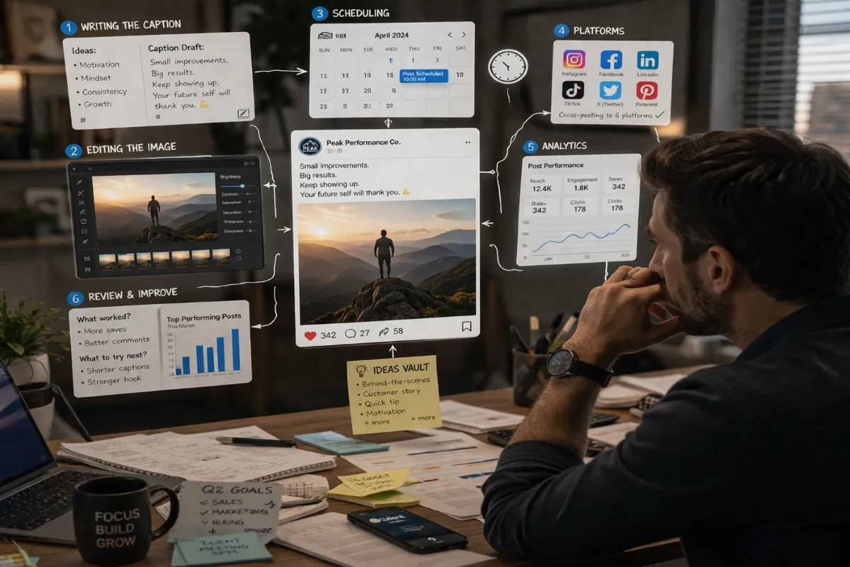 Each step is small. Together, they take time you’re already short on. So even when you intend to stay consistent, social media keeps falling behind everything else that feels more immediate.