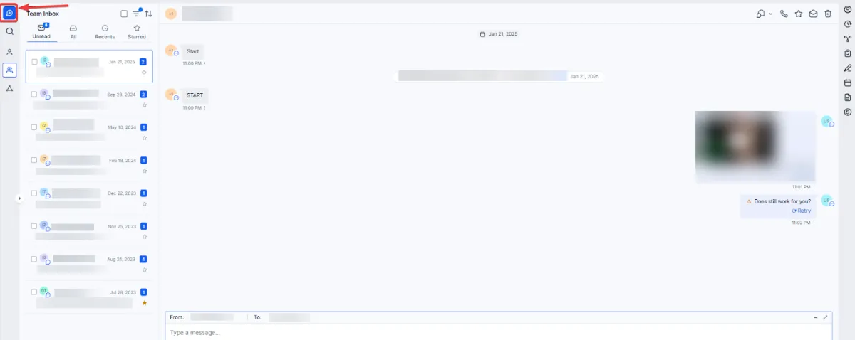 A team member receives a notification in the Unified Inbox.